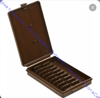 Коробочка W-9-SM-70 для хранения 9 патронов калибра 17 Fireball,17 / 221 / 222 / 223 Rem, 204 Ruger, 219 Donaldson Wasp, 22BR, 22 PPC, 22 Sav. HP, 220 Rus., 222 Rem. Mag., 22-250, 223 Rem. HP, 224 Wby. Mag., 303 Sav., 30-30 Win., 32-40 Win., 32 Win S. L., 32 Win. Spl., 351 WSL, 6x47, 6mm BR-DX, 6mm Norma BR, 6mm PPC USA, 7.62x39 Rus. Материал - пластик. Цвет - коричневый. Производство фирмы МТМ (США)