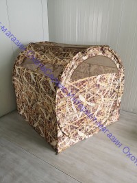 Конструкция автоматического раскрытия с откидным верхом для стрельбы. В засидке могут свободно разместиться два охотника в сидячем положении. Имеются карманы и стропы для установки дополнительной маскировки из местной растительности. Комплектуется чехлом с лямками для переноски. Материал плотностью 300D. Рекомендуется для охоты на гуся и утку.