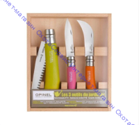 Набор ножей Opinel серии Garden: пила №12, садовый № 08, садовый серповидный №08, нерж.сталь, бук, дер. футляр, 3 цвета, 001617