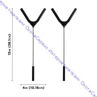 Оба держателя для мишеней – глиняных тарелочек: EZ-Aim Clay Target Holder, Holds 4.5" Clay Targets оснащены стальным стержнем с расположенным в верхней части v-образной опоры, удерживающей стандартную 4,5-дюймовую мишень для стрельбы по глине. Предусмотрено 2 способа фиксации держателя: непосредственно вставкой стального стержня в почву или посредством входящих в комплект поставки адаптеров для использования с кронштейнами системы специальных мишеней EZ-Aim ™. Скобы крепления держателей с применением адаптеров в комплект не входят. Общая высота держателя: 38,1 см (15"). Ширина v-образной опоры: 4" (10,16 см).