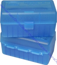Коробочка-кейс фирмы MTM для патронов .30-06, 7.62 x 54R Rus., 9.3 x 62, голубая, прозрачная, RL-50-24