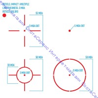 Прицельная марка точка 5 МОА, точка 3 МОА с кругом 50 МОА, точка 3 МОА с перекрестием 50 МОА, точка 3 МОА с кругом / перекрестием 30 МОА