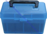 Коробочка-кейс фирмы MTM на 50 патронов кал. 300wm, 375 H&H Mag., голубая, прозрачная, RLLD-50-24