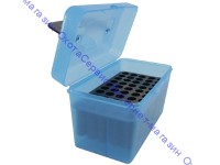 Подходит для размещения 50 патронов: 17 Fireball, 17 / 221 / 223 Rem., 204 Ruger, 222 Rem. Mag., 223 Rem. HP, 300 Sherwood, 300 Whisper, 32Ideal, 6mm TCU, 6mm-223 Rem, 6x47. Пулей вверх Max. = 6 см. Пулей вниз Max. = 8,75 см. Материал - синий пластик. Производство фирмы МТМ (США)