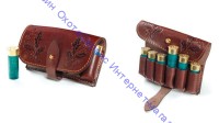 Подкладка из замши обладает нескользящими свойствами. Четыре съёмных закрытых однорядных подсумка (по 6 патронов в каждом) под 12 калибр. Застёжка на кобурной кнопке. Патроны помещаются в ячейки (карманы) из натуральной кожи. Патроны в подсумке плотно фиксируются. На каждом подсумке по две шлейки под ремень шириной до 4 см. На подсумках декоративное тиснение.