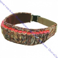 Патронташ выполнен из прорезиненного материала, данная технология обеспечивает быстрое надевание на приклад и надежную фиксацию. На патронташе нанесен камуфлированный рисунок. Ячейки под патроны выполнены из прорезиненного материала и надежно удерживают патроны.