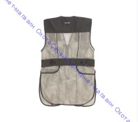 Профессиональный стрелковый жилет, изготовлен полностью из сетчатый ткани, со вставками из плотной из ткани. Сетка способствует вентиляции тела стрелка и создает комфортные ощущения даже в самую жаркую погоду. Впереди жилетка застегивается на молнию. На плечах имеются карманы для амортизатора, для четкой фиксации оружия "в плече" во время вскидки. Гель – наполнитель, помещенный в нее, обладает способностью гасить импульс отдачи, рассеивая его действие и переводя его в плоскость перпендикулярную прикладу. Для прочности плечевая часть простегана. У жилета имеются два больших грузовых кармана для патронов и стреляных гильз, а также один скрытый внутренний карман на молнии. В поясной части жилета имеются регулируемые боковые ремни на пуговицах, регулирующие размер пояса. Покрой жилета свободный с разрезами по бокам.