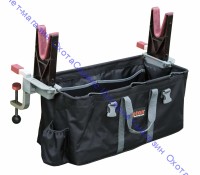 Станок-сумка для чистки оружия Tipton Transporter Range Vise, 782805 представляет собой мобильный комплект передней и задней опор для чистки оружия, переносимых в большой походной сумке. Обе опоры базируются на достаточно мощных резьбовых струбцинах, привинчиваемых перед чисткой оружия к любой внешней столешнице на необходимом для установки оружия расстоянии. В верхние полки каждой струбцины, содержащих специальные окна, устанавливаются съемные вертикальные стойки опор. Таким образом, реальной связывающей силовой базой опор служит внешняя столешница с прикрепленными к ней струбцинами и вставленными стойками. Когда оружие для чистки вставляют в обе опоры, система готова. Сумка, в которой переносились струбцины и стойки, силовой нагрузки в процессе чистки не несет. В комплект поставки входит встроенный держатель для напитков, в самой сумке предусмотрены 3 кармана для переноски содержимого, в том числе элементов оружия, но в ней могут находиться и аксессуары, необходимые для чистки. Производитель: Battenfeld Technologies, Inc. (США)