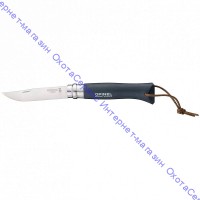 Нож Opinel серии Tradition Trekking №08, клинок 8,5см, нерж.сталь, рукоять-граб, цвет темно-синий, темляк, 002212