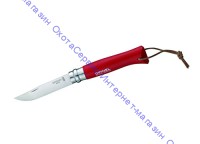 Нож Opinel серии Tradition Colored №08, клинок 8,5см, нерж.сталь, рукоять-граб, цвет красный, темляк, чехол, 001890