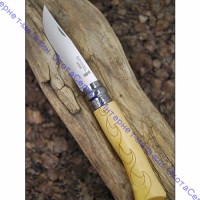 Нож Opinel серии Tradition Nature №07, клинок 8см, нерж.сталь, рукоять-самшит, рис.-листья, 001551​.