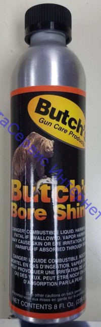 Butch's Bore Shine. Отличный чистящий, необразивный, химический сольвент. Разработан опытным бенчрест-стрелком для эффективного удаления нагара особенно на полях и в углах нарезов. Он также удаляет омеднение, углеродные отложения, освинцовку, воск и даже пластик в гладкоствольных стволах. Таже с его помощю можно "замачивать" ствол на длительное время.
