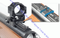 Для размещения сошек для оружия Липерс на месте антабки сначала нужно поставить переходник, идущий в комплекте. Наденьте адаптер и закрепите при помощи штыря, присоедините базу и прижмите поворотным кольцом.